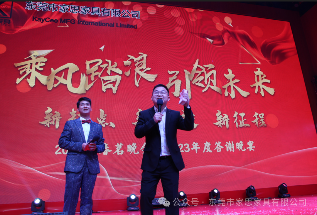 圖 l 家思家具有限公司董事長馬丁先生發(fā)表講話 晚會上,馬丁董事長對過去家思家具有限公司取得的成績做了總結(jié),也對公司2024年的戰(zhàn)略布局作了分享。 整場晚會由表彰先進和文藝匯演,抽獎互動三大部分組成,精彩紛呈,掌聲雷動!現(xiàn)在,請跟著圖文一起回顧元宵晚會的精彩瞬間—— 整場晚會以一陣熱烈的宣天鼓拉開序幕,特別邀請歌舞,魔術(shù)表演振奮了每一位家思家人的心,董事長馬丁先生、揭總,石總,占總,李總親上臺為節(jié)目醒獅點睛!